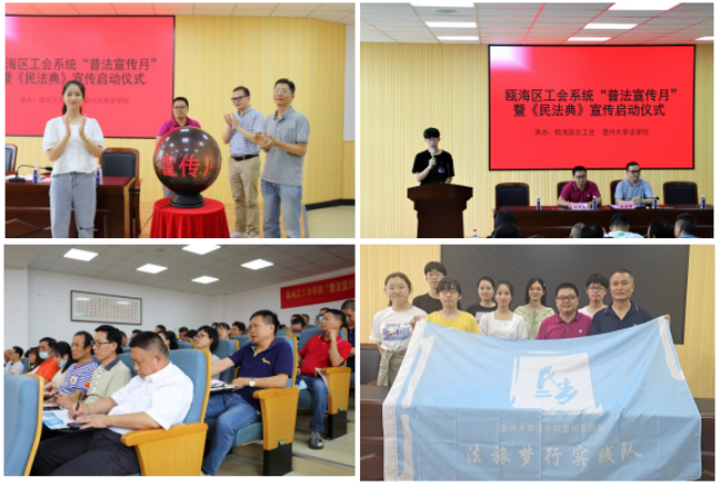 “法旅梦”实践队开展“平安瓯海”综合体建设、疫情之下企业员工权益保障等课题调研,并与学院法学专业老师一起开展民法典和应急法主题宣讲活动。