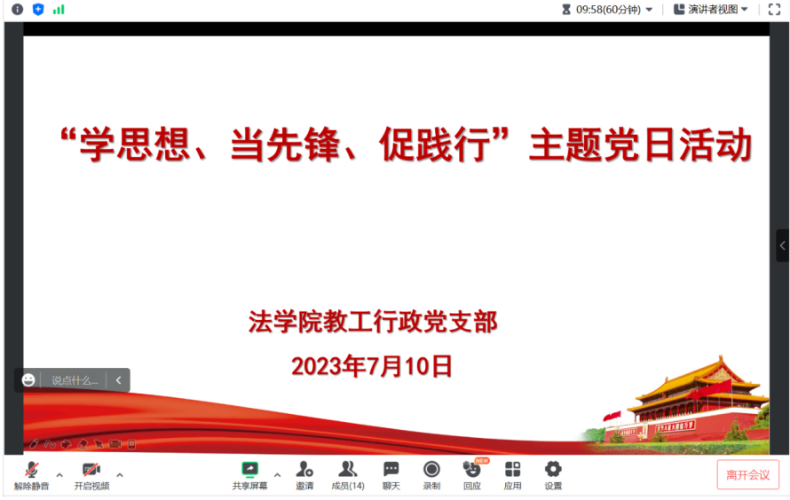亮旗帜,深入开展主题党日活动。学院各党支部围绕“学思想、当先锋、促践行”为主题开展主题党日活动。各党支部充分用好《习近平著作选读》、《习近平新时代中国特色社会主义思想专题摘编》等学习材料,做到真学真信真用、学懂弄通做实,确保学习成效。各党支部全面覆盖学精神,组织师生党员通过开展个人自学、集中学习、专题研讨、微型党课、主题讲座等方式,结合线上线下开展活动,线上开展主题学习会,线下发动党员积极参加党员先锋岗、党员突击队等家乡红色志愿服务活动。教工行政党支部线上开展“学思想、当先锋、促践行”主题党日活动,学院党委书记林钦以《习近平新时代中国特色社会主义思想的世界观、方法论和贯穿其中的立场观点方法》为题带头讲党课,并鼓励党员深入学习习近平总书记关于教师队伍建设的重要指示精神,提升教师的规则意识,坚定理想信念、厚植爱国情怀、涵养高尚师德。本科生第三党支部开展学习“奉献精神”学习会、优秀党员义工分享会、“传承雷锋精神 争做时代先锋”支部品牌活动,形成线上线下良性互动,强化学习应知应会、深悟践行。