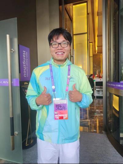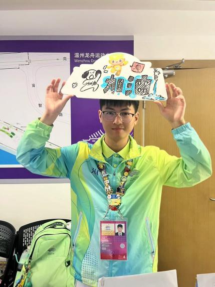 志愿感言:大家好,我叫许吉程,是龙舟基地媒体运行领域的志愿者。我的工作是负责在服务台接待来访的媒体工作者,协助他们签到,填写各类申请表格,发放媒体物资,并提供各类咨询与答疑。整个志愿工作十分辛苦,也十分充实。作为一名共产党员,我曾宣誓要全心全意为人民服务。这次做亚运志愿者是一个很好的机会,让我能够服务人民,服务社会,践行一名共产党员的初心与使命。
