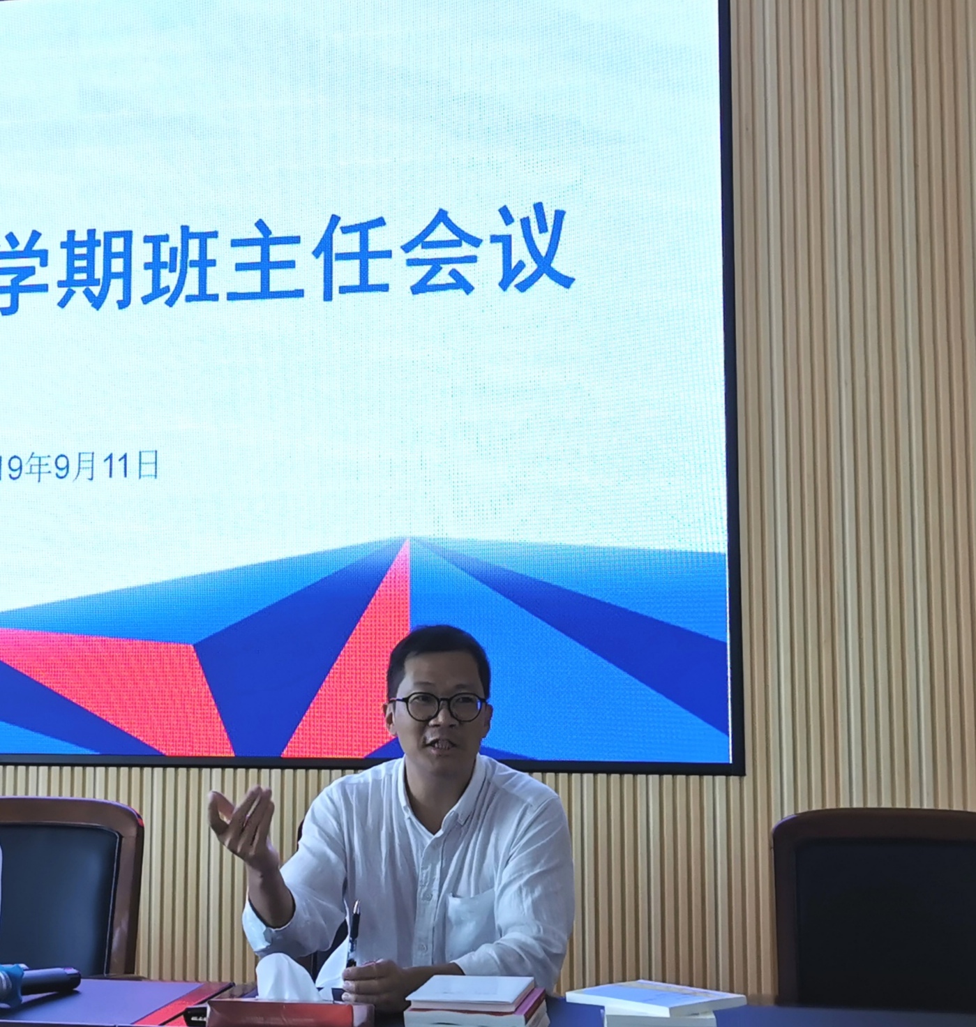9月11日中午,学院2019-2020学年第一学期班主任工作会议在301会议室召开。学院党委副书记杨振海、学工办主任林丽丽、辅导员和学院全体班主任老师参加了会议。