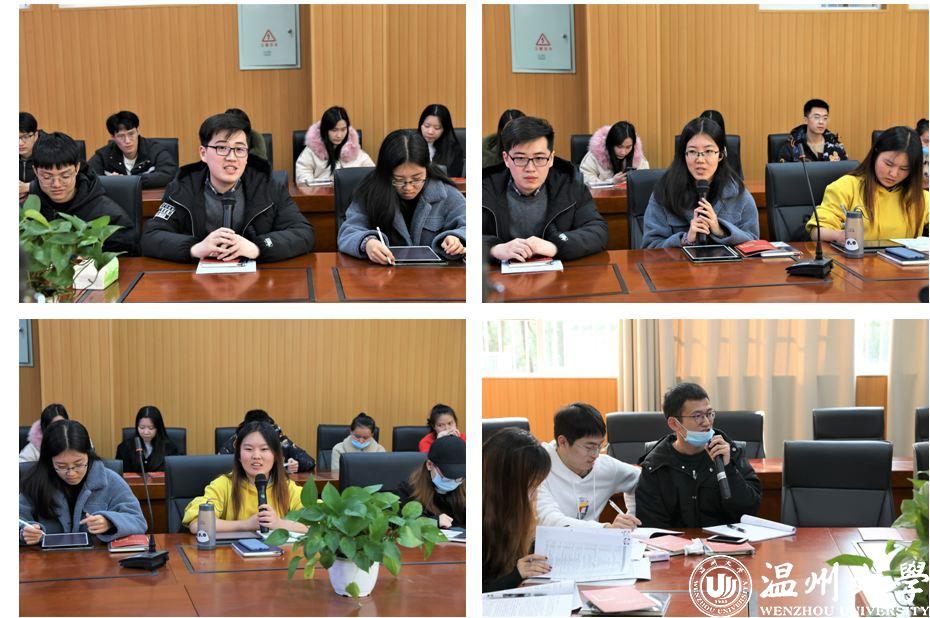 考研学生代表就目前备考情况向学院进行汇报,考生们对学院推进考研工作提出建设性意见和建议。