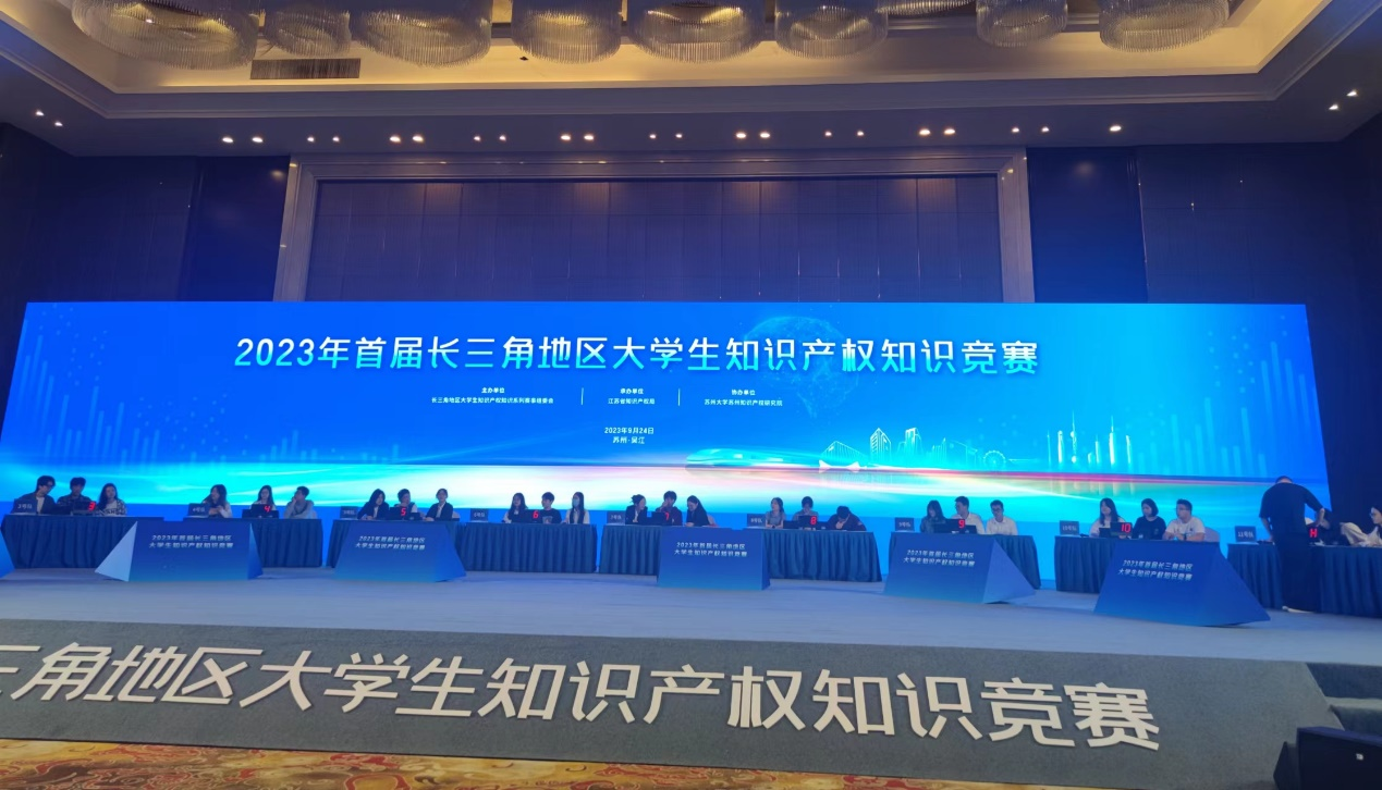 本次赛事由长三角地区大学生知识产权知识系列赛事组委会主办,江苏省知识产权局承办,苏州大学苏州知识产权研究院协办,一市三省(上海、江苏、浙江、安徽)知识产权系统领导和12支高校代表队参与。整体上,赛事分为三个阶段,各省(市)经过初赛分别选出前三名代表队,组成12支队伍,于8月下旬参加长三角地区知识产权知识竞赛夏令营活动,后于本月24日进行决赛。我校代表队先是冲出高校云集的初选赛,接着在决赛赛场上灵敏果断、沉着以对,经过共答题、挑战题、限时共答题、风险题、抢答题、案例评析题等六轮激烈角逐,最终取得团体第三名的好成绩。