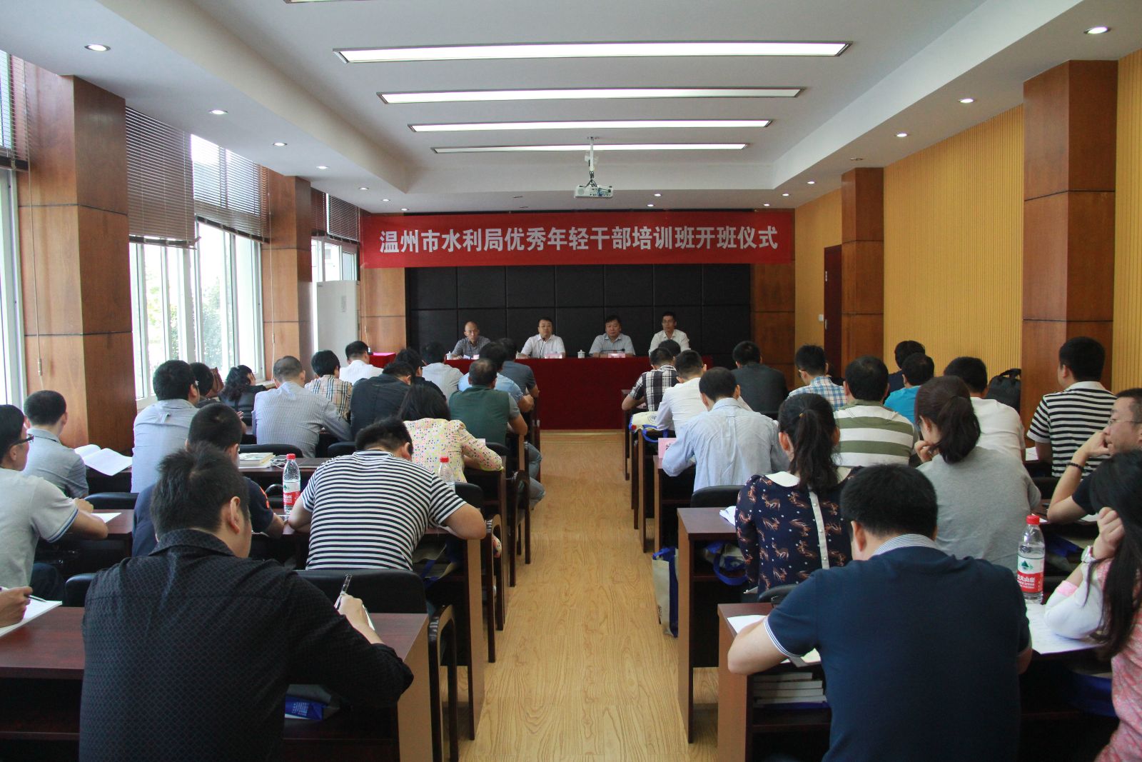 市水利局、我校领导和院领导对于本次培训都予以高度重视,希望各位学员通过此次培训机会,营造严肃、活泼、团结、紧张的良好氛围,努力学习中国特色社会主义理论,加强团队意识和协作精神建设,加强党政廉政文化建设,从而进一步提高工作人员的行政业务能力,树立良好的温州水利人形象,从而使理论知识更有效地指导工作实践,培养造就高素质水利事业后备干部队伍。