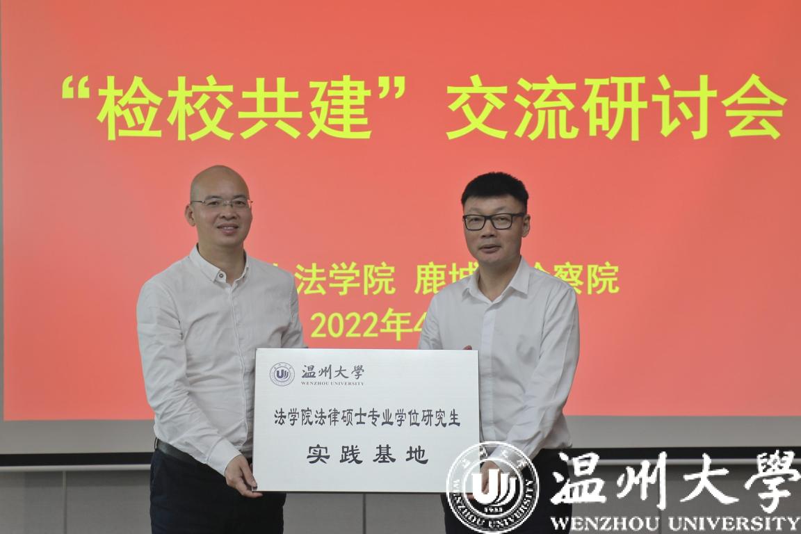 王宗正院长与陈贤木检察长共同为“温大看片狂人 法律硕士专业学位研究生实践基地”揭牌。