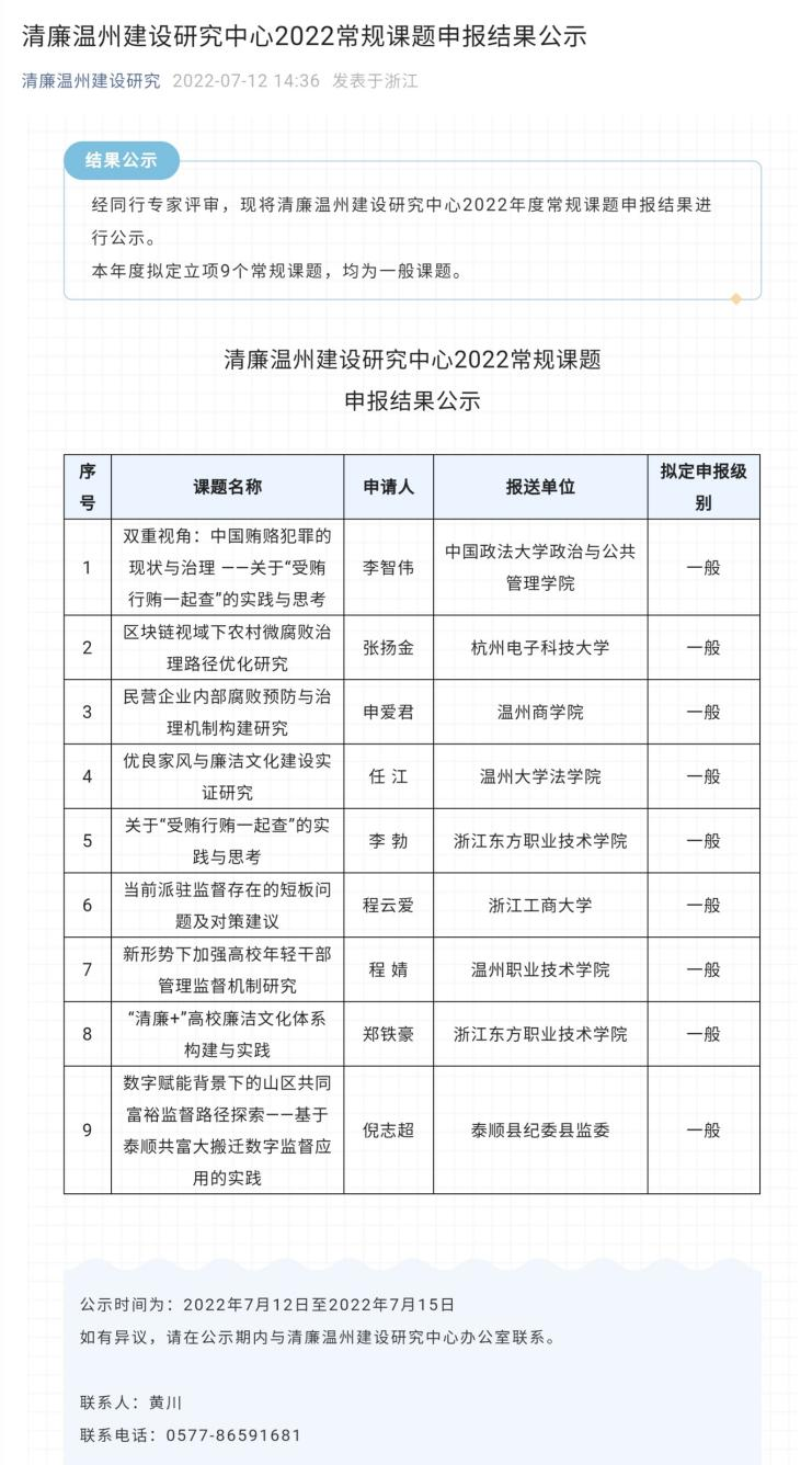 附:清廉温州建设研究中心2022年度规划课题申报结果公示