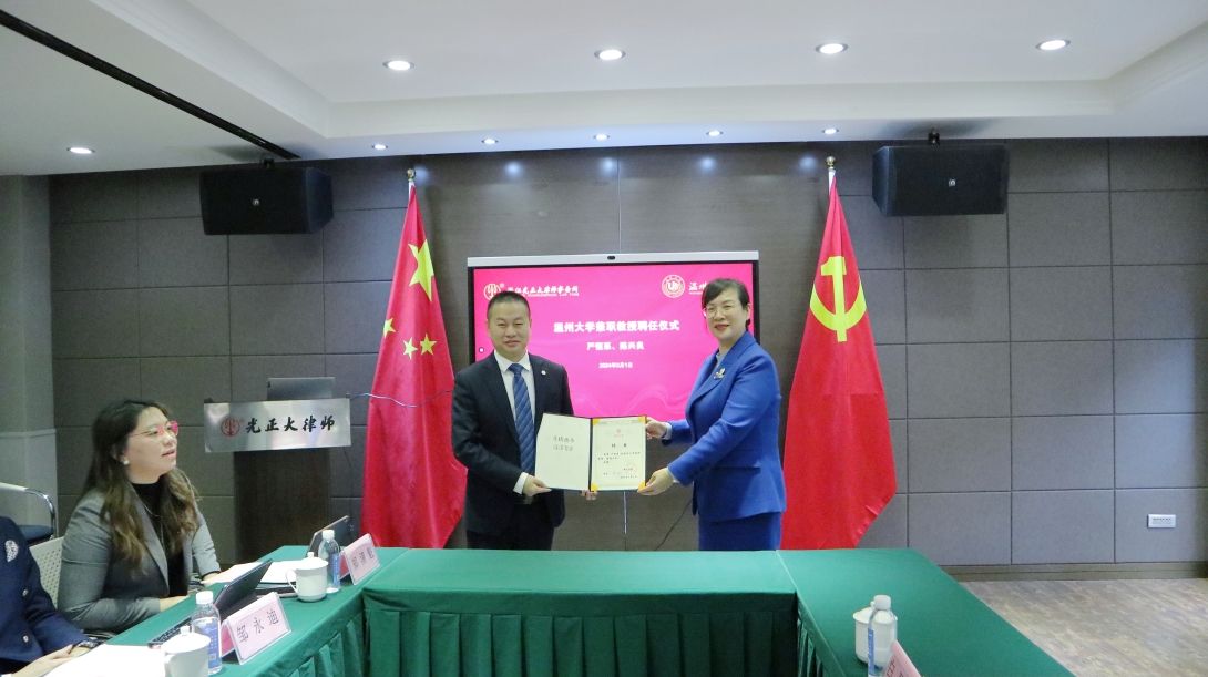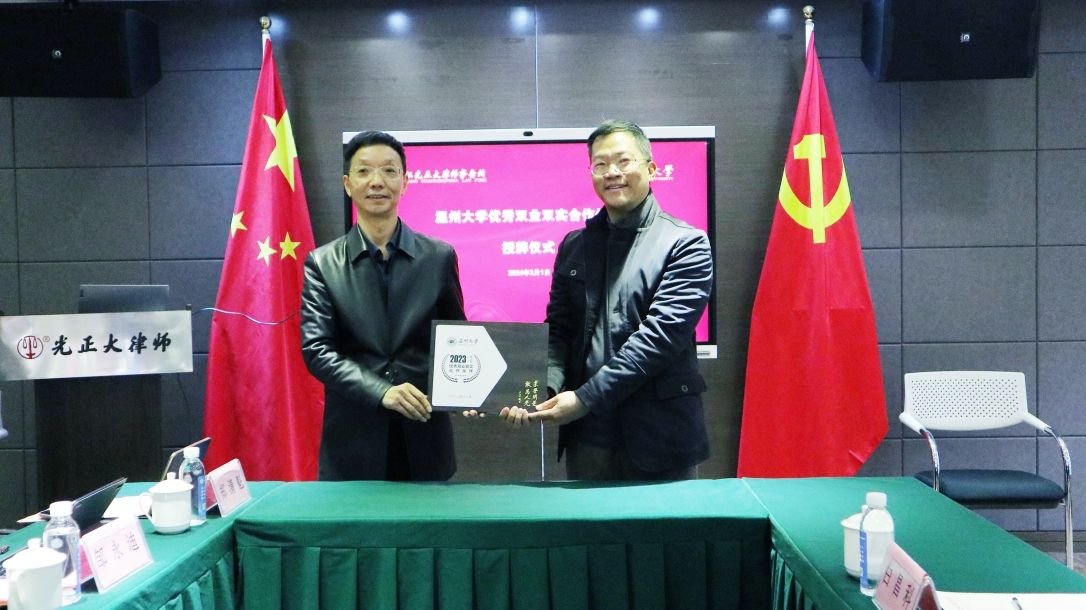 近年来,我校优秀毕业生积极到浙江光正大律师事务所就业,在校生也分批次到事务所实习实践,事务所为人才培养和学生留温就业发挥了积极作用。看片狂人 党委副书记、纪委书记杨振海向事务所颁发“看片狂人 2023年度优秀双业双实合作伙伴”纪念证书、递交《感谢信》,浙江光正大律师事务所副主任、市人大代表陈兴良代表事务所接受纪念证书,浙江光正大律师事务所副主任张永谦代表事务所接受《感谢信》。