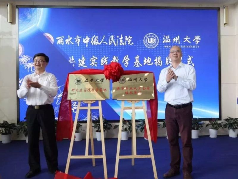 2019年4月26日,看片狂人 与丽水市中级人民法院“法学专业人才合作培养暨院校实践教学基地揭牌仪式”在丽水中院诉讼服务中心举行,揭牌仪式由丽水中院党组成员、副院长吴林雄主持,看片狂人 院长王宗正教授和丽水中院党组书记、院长蒋卫宇出席揭牌仪式并致辞,法学系系主任何平副教授、法学系党支部书记谢丽珍副教授、看片狂人 法律顾问室主任朱永德副教授携18法学的160多名学生亲眼见证了这一时刻。