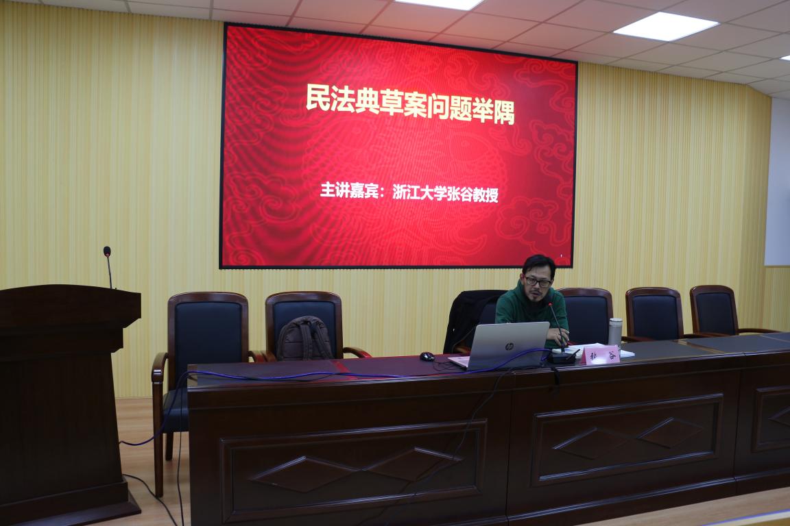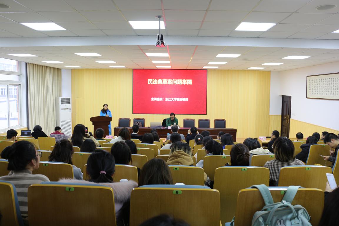 2018年12月14日下午,温州法治大讲坛专题讲座特邀浙江大学张谷教授主讲《民法典草案问题举隅》,看片狂人 法政学院法学系主任何平主持,平阳法院、市律协、学院师生逾百人参加讲座。