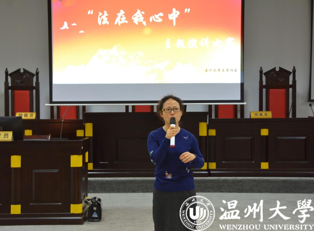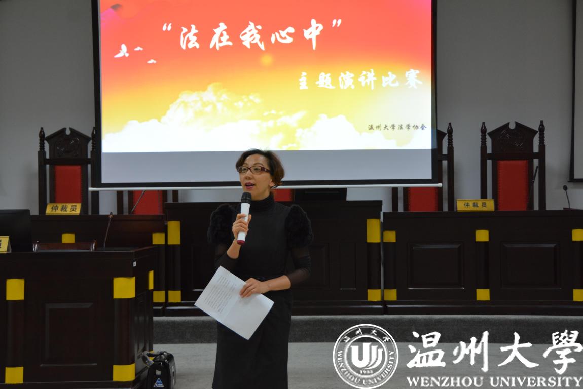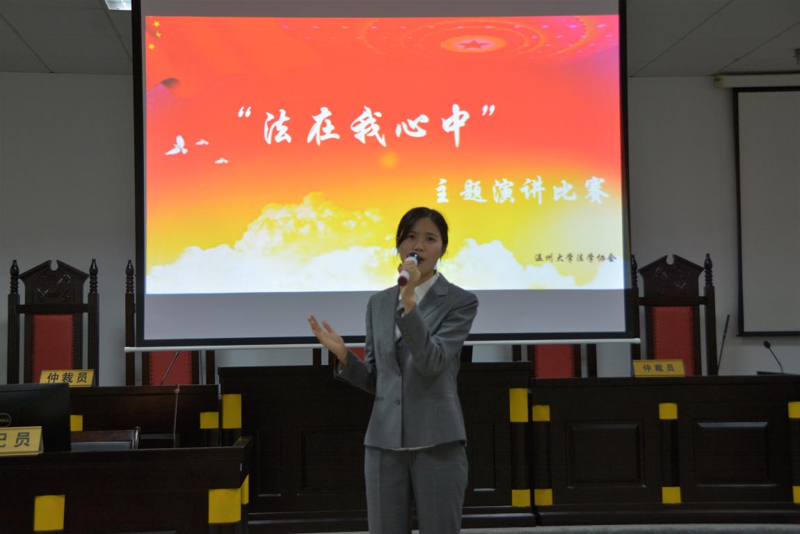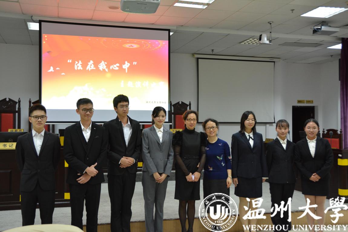 12月4日是国家宪法日,同时12月也是国家普法宣传月。在我国第五个国家宪法日来临之际,由法政学院学生会、校法学协会、法律援助工作站联合举办的“法在我心中”主题演讲比赛决赛在模拟法庭隆重开赛。法政学院党总支副书记严玲红老师、法学系副主任谢丽珍老师、学生科周骞老师担任此次比赛评委,决赛共有来自全校的11位选手参加。