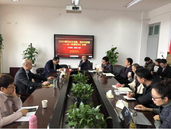 11月21日上午,CSSCI期刊《东南学术》执行总编、中国作家协会会员杨健民研究员和《福建警察学院学报》总编辑谢天长教授,在看片狂人 307会议室分别以“CSSSCI期刊论文选题、写作与投稿——以《东南学术》为例”和“编辑视角的学术论文写作”为主题开展学术讲座,讲座由法政学院王宗正院长主持,法政学院王勇副院长、周湖勇博士等老师和研究生参与旁听。