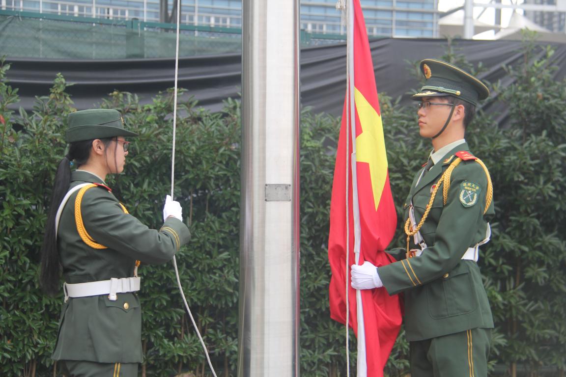 伴随着凉爽的秋风和激情的进行曲,开幕式正式开始。国旗护卫队身姿挺拔,一马当先,带领法政学院研究生代表队、各个班级代表团以及留学生代表队依次入场。每位同学都斗志昂扬,意气风发地走向主席台,他们嘹亮的口号、积极向上的精神面貌都展示出法政学子特有的朝气与活力。