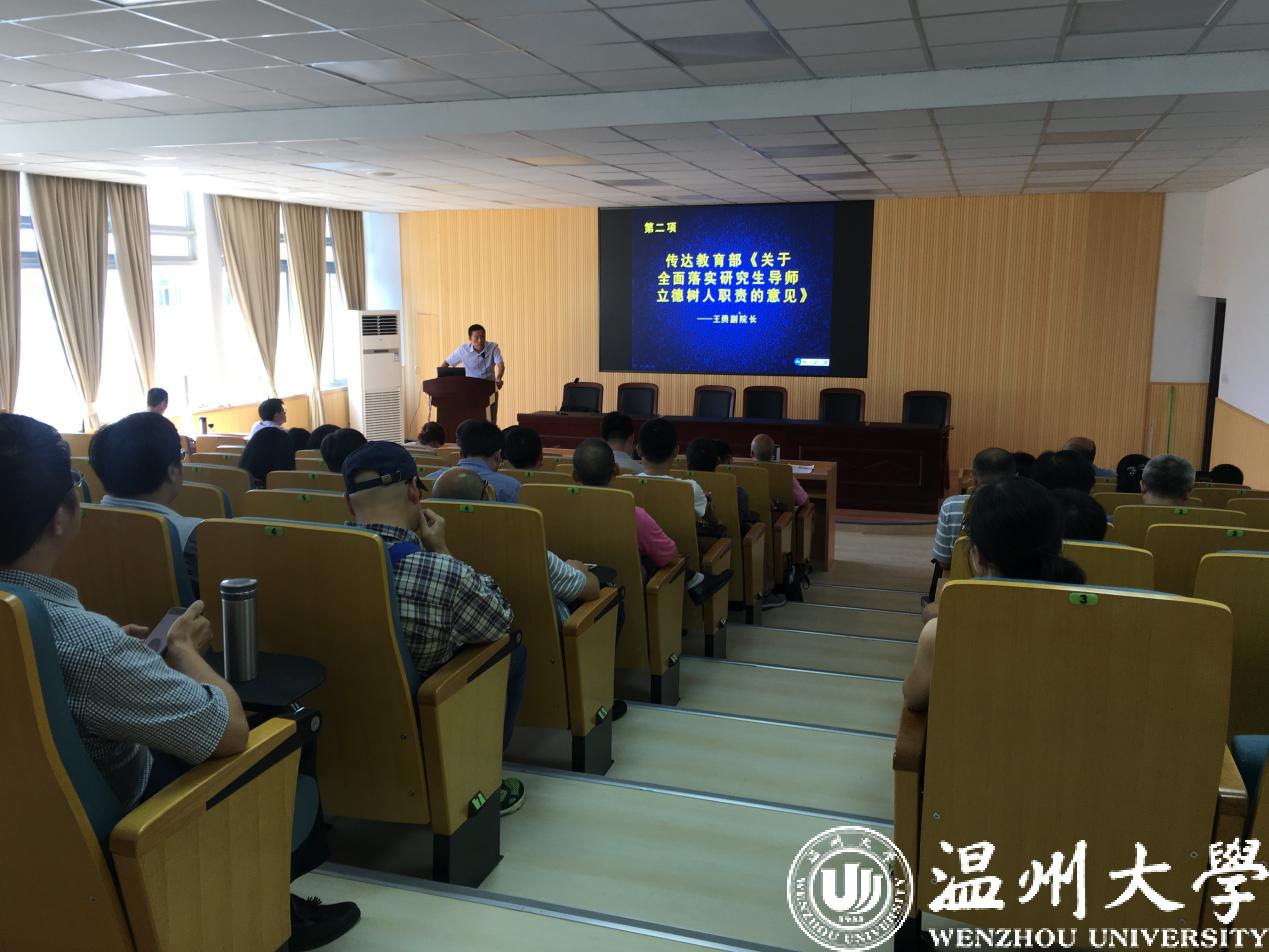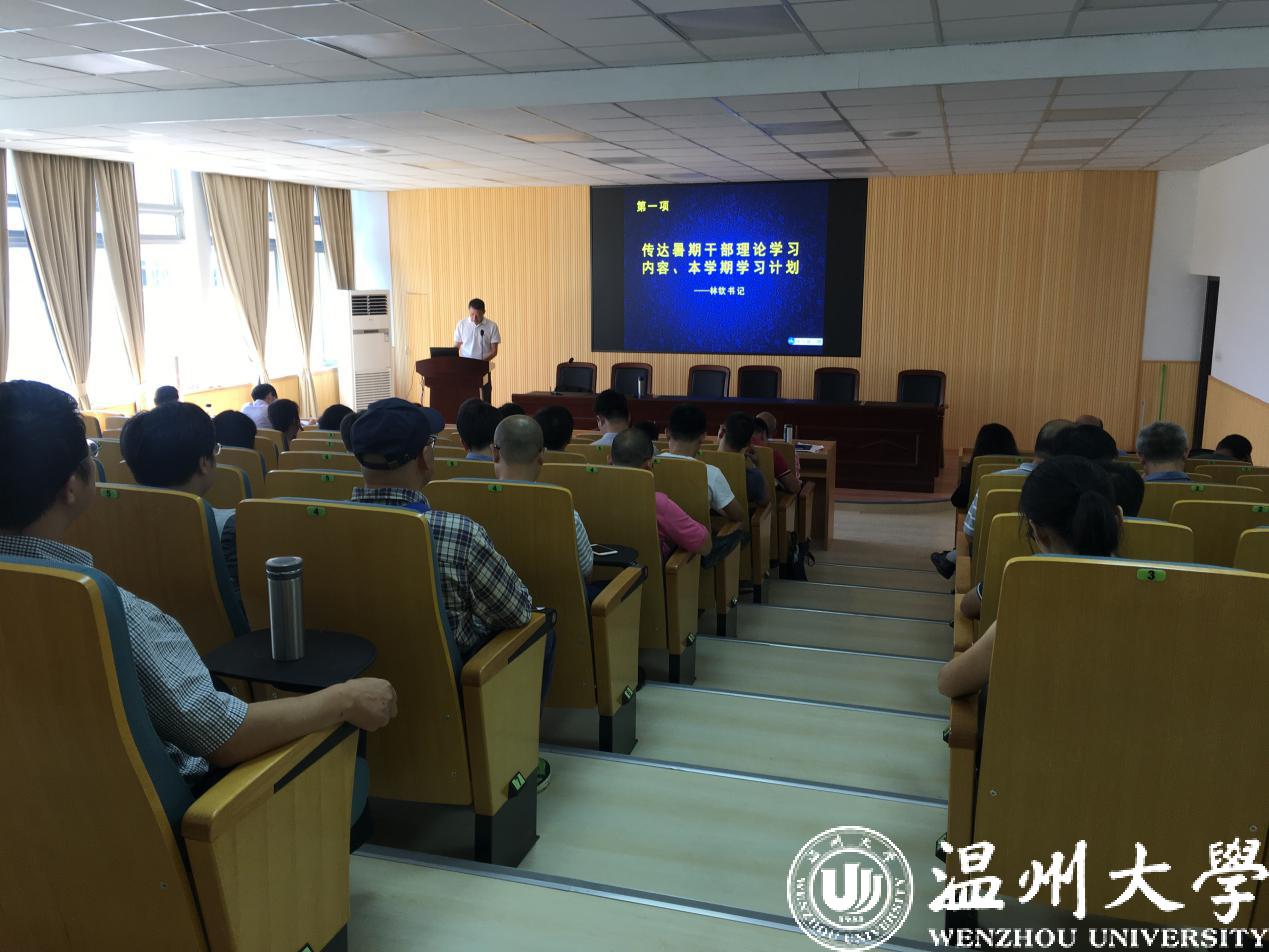 会上,林钦书记传达了暑期干部理论学习会议主要精神,围绕“以‘本’为本 争创一流 用‘八八战略’引领学校新发展”这一主题,深入学习贯彻习近平总书记在《中共浙江省委关于“八八战略”实施15年情况的报告》上作出的重要指示精神,学习贯彻新时代全国高等学校本科教育工作会议和全省本科高校书记校长暑期读书会精神,坚持“以本为本”,推进“四个回归”,加快建设高水平本科教育,加快博士学位授权点培育。另外,根据中央、省委要求和相关文件精神,林钦书记布置了本学期的教师和党员学习计划,争取通过每月的理论学习和多种类型的党组织活动,不断提升教师党员的思想政治素质,为推动学院科学发展提供坚强的思想保证。