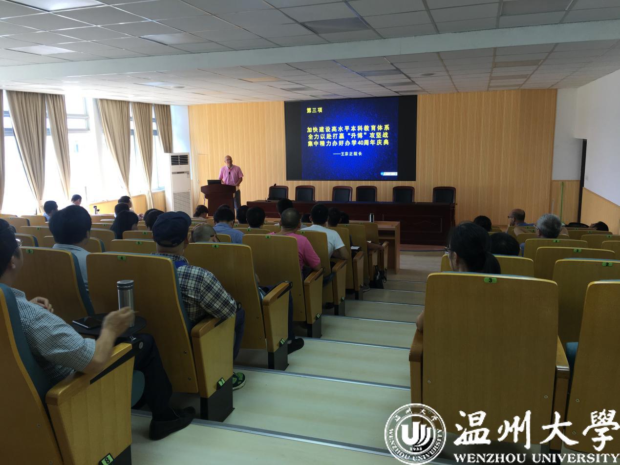 王宗正院长布置了本学期的重点工作:一、要加快建设高水平本科教育体系,充分认识到本科教育存在的不足和问题,坚持教学工作中心地位,及时反思并积极创新;二、全力以赴打赢“升博”攻坚战,要树立信心、坚定决心,客观认识“升博”形势,更新观念、整合优势,落实“升博”目标任务,凝聚力量、形成合力,打赢“升博”攻坚战;三、集中精力办好学院办学40周年庆典。