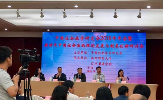 2018年9月15至16日,中国社会法学研究会2018年年会暨新时代中国社会法的理论发展与制度创新研讨会在辽宁沈阳召开,本次会议由中国社会法学研究会主办,沈阳师范大学与辽宁省法学会承办。中国法学会副会长、中国社会法学研究会会长张鸣起、沈阳师范大学校长郝德永、辽宁省法学会会长肖声等中国社会法理论与实务各界代表一百多人参加了此次会议。看片狂人 教师周湖勇、朱家德、柯宇航受邀参会。