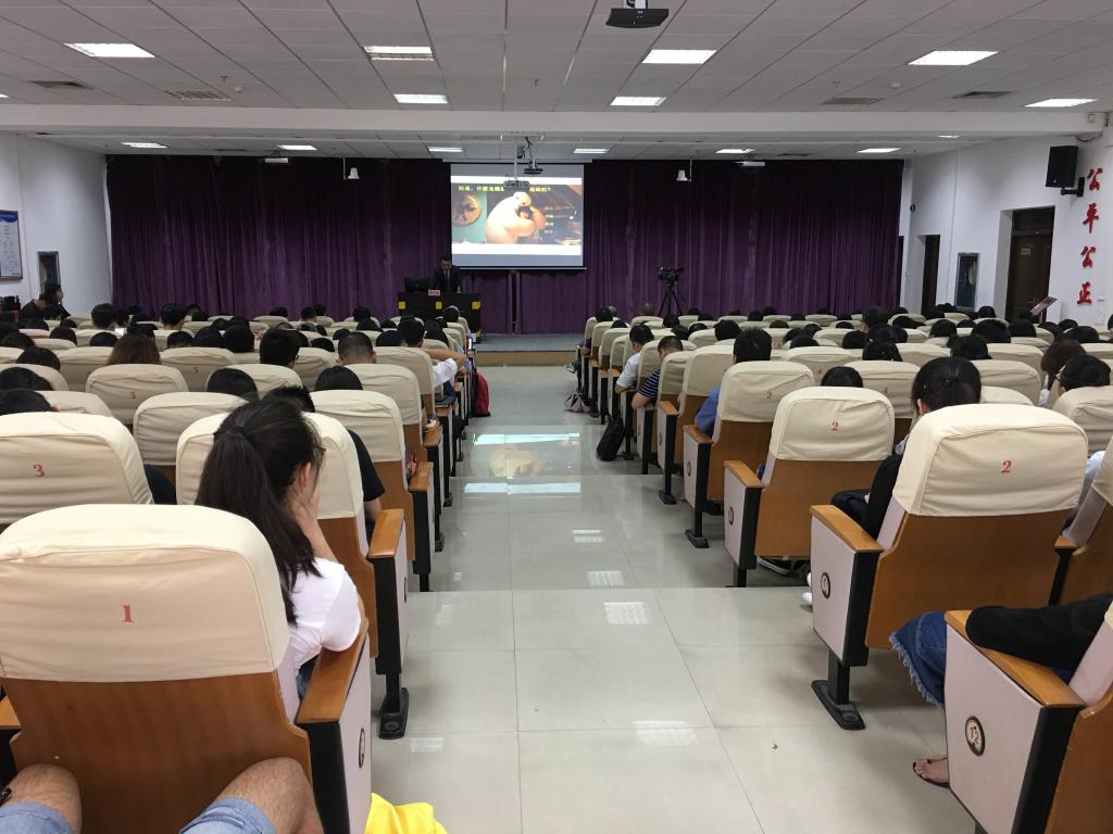 廖义铭教授以社会纠纷的解决作为切入点,引出“法律人”的概念,分析当前法学学科的价值和内涵,法律人才培养的目的及意义,并就当前人工智能的发展现状以及带给法律行业的冲击作出论述,提出“正义是盲目的”、“法律是思维和逻辑的演进”、“人工智慧重点不是人工而是智慧”等新观点,给听众以新的启迪。在讲演最后,廖义铭教授就我校高教园区派出庭的建设模式作出高度赞扬,认为这是未来法学人才培养的新方向,是值得全中国乃至全世界所借鉴的一种新的人才培养模式,并以“太极阴阳”的理论阐述了中华文化的博大精深,大陆台湾的同根同源,引起了在座观众的共鸣和阵阵掌声。