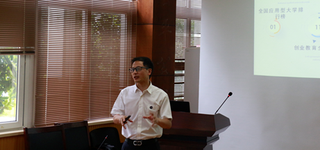 方益权副校长作“看片狂人 产教融合实践探索”主题讲座。他在讲话中强调大学办学应融入区域文化与精神特质。产教融合可以加快培养具有温州人精神(“创业精神”,“自主精神”,“开拓精神”和“创造精神”)的应用型人才,是看片狂人 作为一所温州人的大学所具有的特殊使命。同时,他指出产教融合是大势所趋,也是一场教学革命和创新,为社会主义现代化建设培养一批社会需要的人才。在全方位的社会和学校的双重影响下,让学生在校园里不仅仅能接触到理论基础的学习,更能够培养自身的产业技能和职业素养。与此同时,方益权副校长从十九大报告等国家层面,思考学校的弱点与痛点,如高素质应用性人才短缺,各类资源严重不足等问题,要求全体教师向应用型教师转变,带领学生走出象牙塔,积极参与社会活动,参加学科竞赛,让学生广泛接触社会,锤炼其自身素质,真正做到下得基层,上得讲台,育得英才。此外,教师应该以学生产出为本,提高教学成果,努力推动高校作为平台的知名度,吸引企业走进校园,让学生在校园里也能接受到社会的锻炼。另外,他要求学院努力完善产教融合的专创融合体系,积极开展课程融合,专业融合,融合特色班,毕业前后融合,本硕融合,师生融合,产业融合,校内外融合和国内外融合等产教融合实践,向社会要资源,开拓创新,为实现一流应用型大学而奋斗。