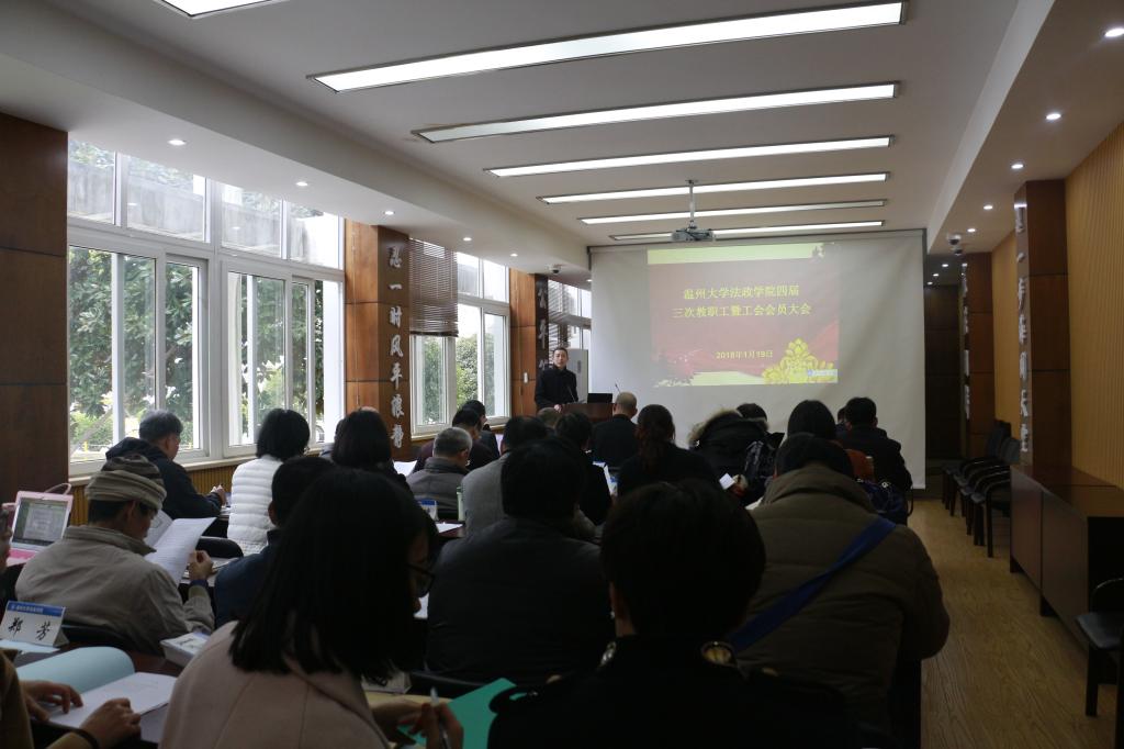 2018年1月19日下午2:30,法政学院全体教工在学院报告厅召开了第四届三次教职工暨工会会员大会,大会由林钦书记主持,全体教工参加。
