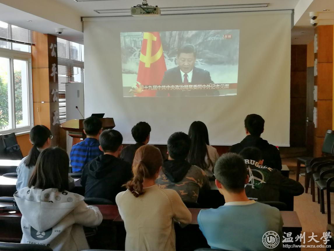 2017年10月25日11时45分,看片狂人 法政学院组织法政团学干部集体收看了十九届中央政治局常委见面会的直播节目。各班同学都积极参加并认真收看了本次见面会,共同度过了十分有意义的35分钟。