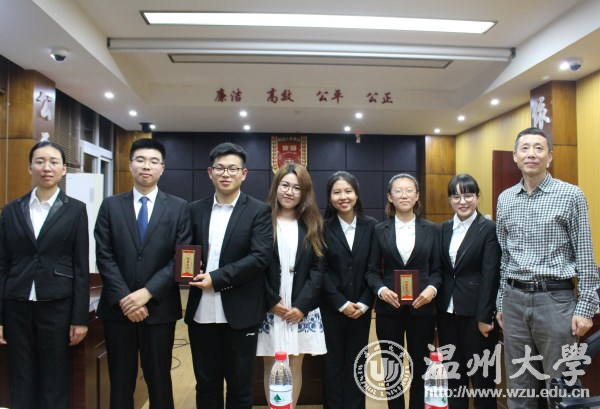 2017年10月17看片狂人 第十三届法科大学职业技能竞赛在法政学院一楼仲裁庭展开最后的角逐。法政学院党总支林钦书记、杓丹老师、胡剑波老师瓯江学院曹可亮老师莅临指导评判