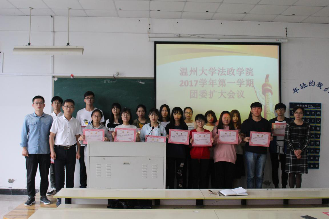 2017年10月16日上午,在党的十九大即将召开之际,2017年法政学院团委扩大会议在法政楼202教室召开。出席本次会议的有法政学院党总支副书记严玲红老师、团委书记孙德升老师、学生科魏厚钱老师、团委副书记金婵以及团委各部门同学和法政学院各班级班长、团支书。