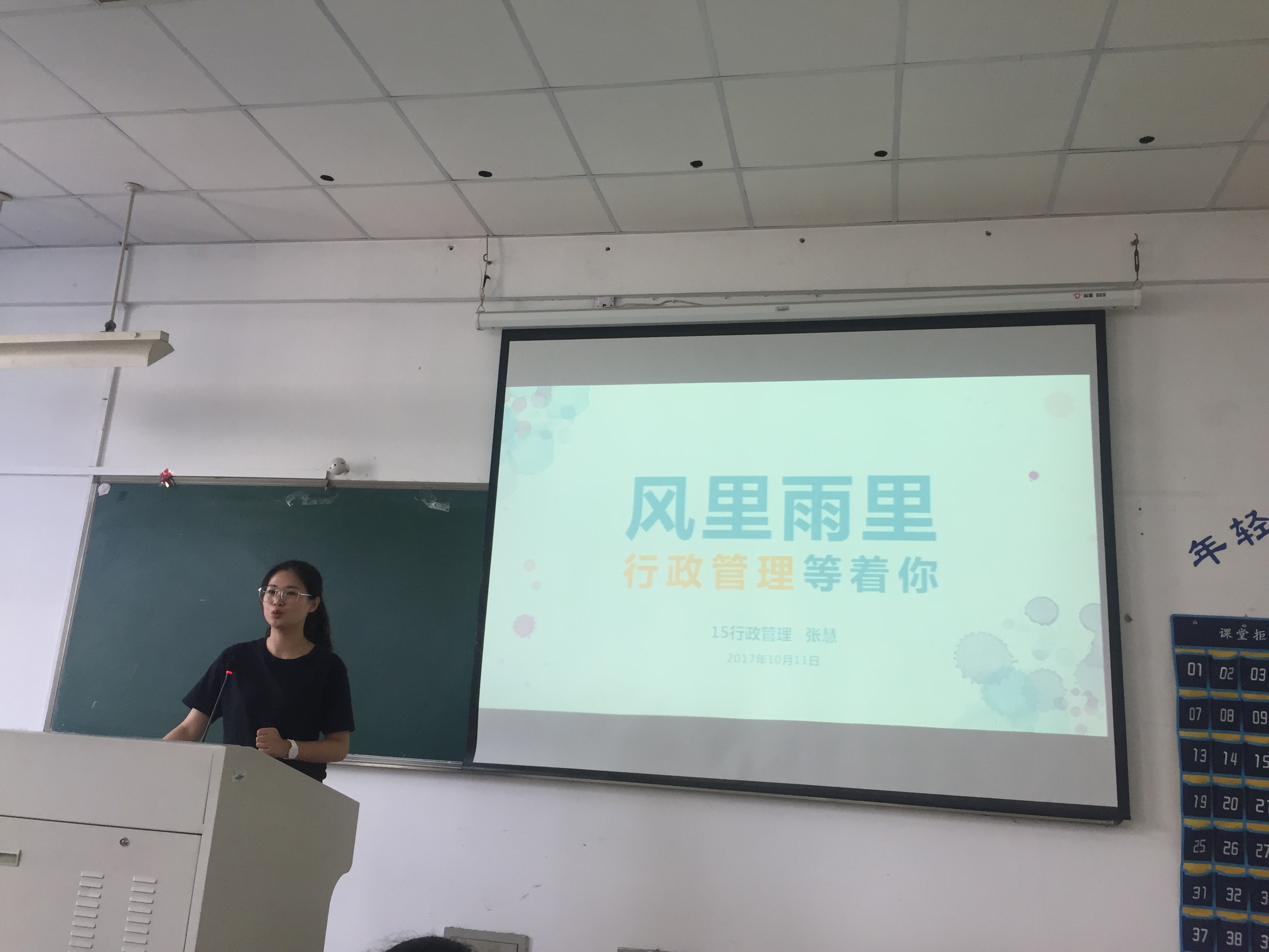 之后,何平老师就法学专业的学科特色和2017级培养方案做了详细介绍。她指出,我国的法治发展需要大量的法律人才,希望同学们潜心学习,不断提升自身的专业素养。行管专业戚学祥老师则从自身经历出发对行政管理专业的介绍和就业前景做了深入浅出的说明。他指出行政管理专业学习内容较多,就业面也较广泛,
