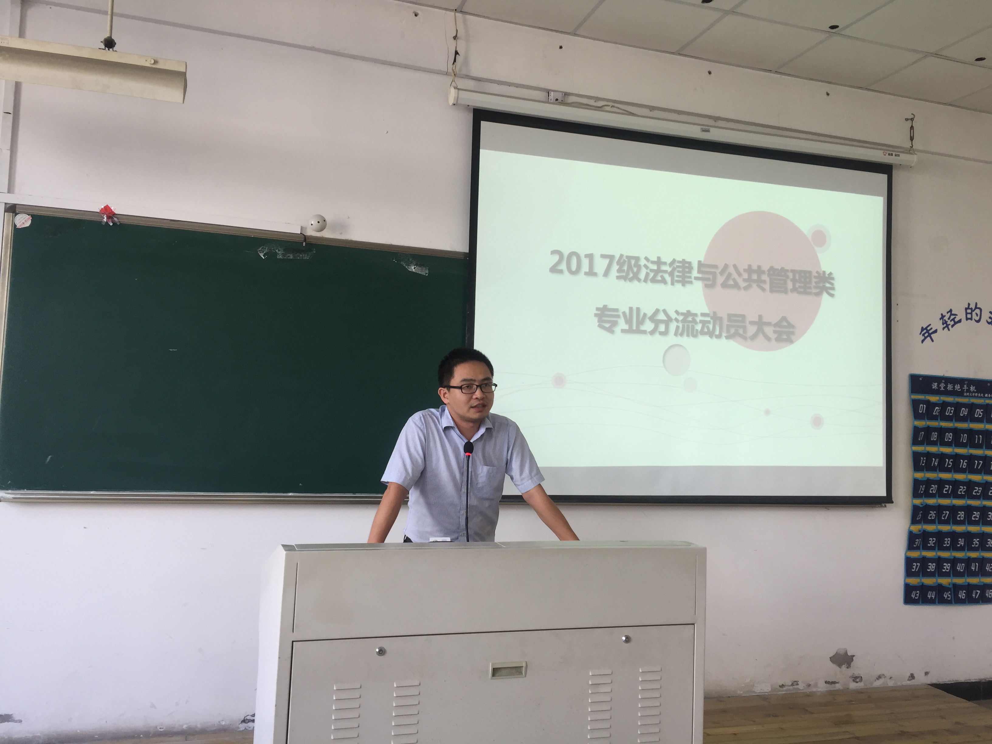 年10月11日下午,法政学院2017级法律与公共管理类本科生专业分流动员大会在北校区2号楼202教室顺利举行。学院教学副院长缪心毫主持了本次大会,王勇副院长、法学系系主任何平、行管专业徐旭东老师、朱婉菁老师、戚学祥老师和2017级法律与公管本科生出席了本次会议。