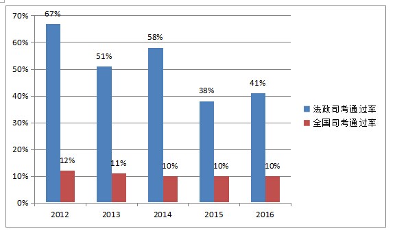 (备注:全国历年司考通过率约10%。)