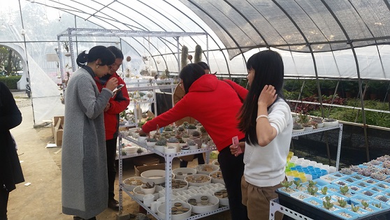 之后,学院女教师在花圃的多肉植物基地进行了"巧手盆栽DIY"活动,女老师们精心挑选自己喜爱的植物,在工作人员的指导下,自己搭配,种植,装饰,一盆盆美丽的盆栽在老师们的巧手中诞生。经过评选,夏小娜老师的盆栽获得了优胜奖。