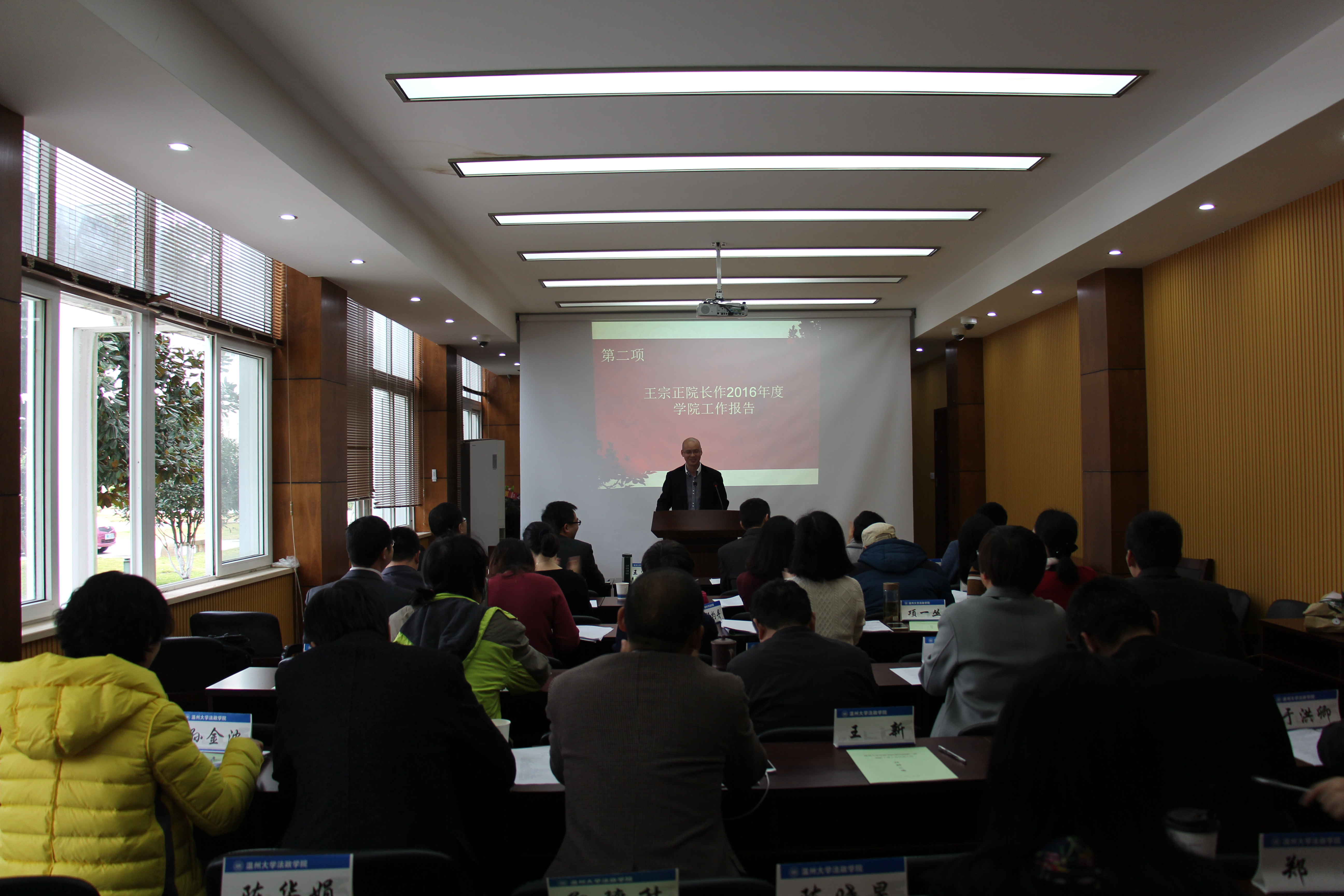 201717日下午2:30,法政学院全体教工在学院报告厅召开了四届第二次教职工暨工会会员大会,大会由王勇副院长主持,全体教工参加。