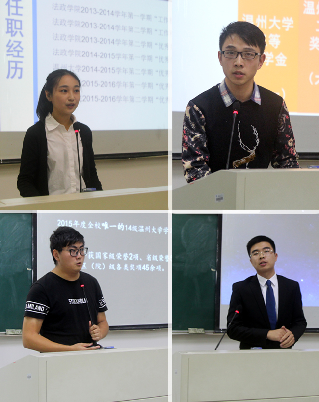 经过现场展示和投票,以下8位同学荣获法政学院2015-2016学年"学习标兵"称号: