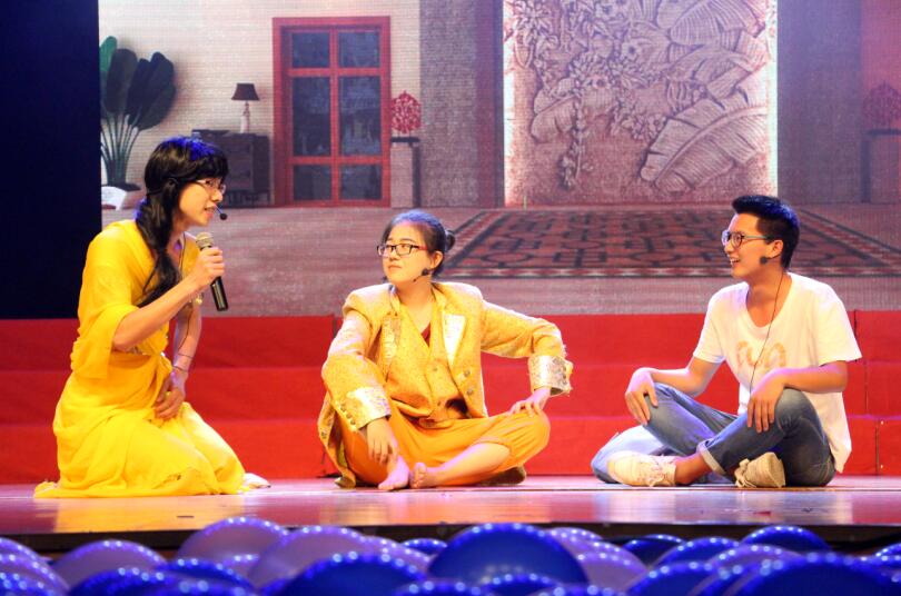 王杰、尹钰担任。法政学院领导、师生齐聚一堂,用一幕幕饱含深情的演出,诉说着心中难以掩藏的情愫。老师、同学陆续到达后,大屏幕上开始播放视频,屏幕上出现的是曾经不以为意、现在却看到落泪的一幕又一幕,勾起大四学子们对青春的回忆。活力动感的开场舞《给力青春》结束后,主持人宣布晚会正式开始。