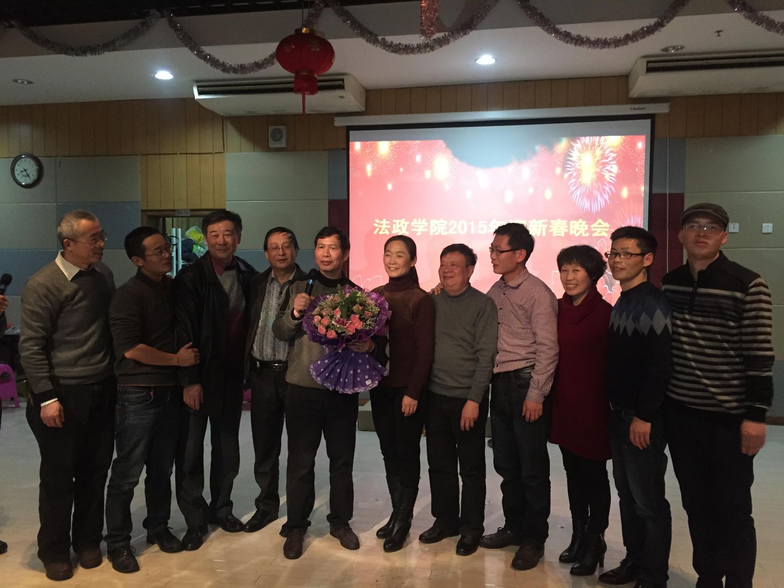 对于两位教授的退休,全院的老师们内心深感复杂,一方面为他们能够以如此辉煌的业绩光荣退休感到无比高兴,这是我们每一位老师都孜孜追求的梦想啊!另一方面,对于他们的退休离队深感无限不舍。在2015年1月17日学院新年晚会上,专门安排了对两位教授的欢送仪式。学院最年轻的两位男女教师代表大家向他们敬献了鲜花,院长和教师代表分别致辞感谢、道别和祝福。两位教授自己也发表了退休时刻的深刻感言。大家纷纷用回忆、拥抱、合影、掌声甚至泪光,表达了对两位教授的依依之情和深切敬佩。他们把自己的青春年华奉献给了法政。他们是最值得人们尊敬的法政人!