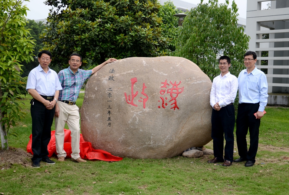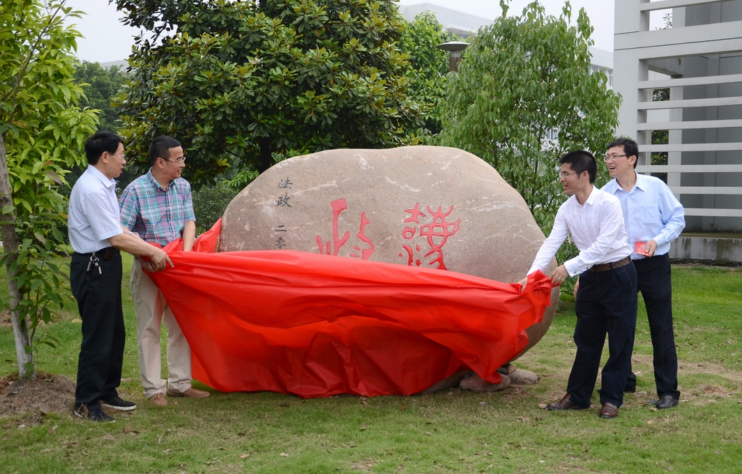 月18日上午,校友景观石捐赠和揭幕仪式在法政楼前举行,法政学院院长钭晓东、党总支书记王柏民和