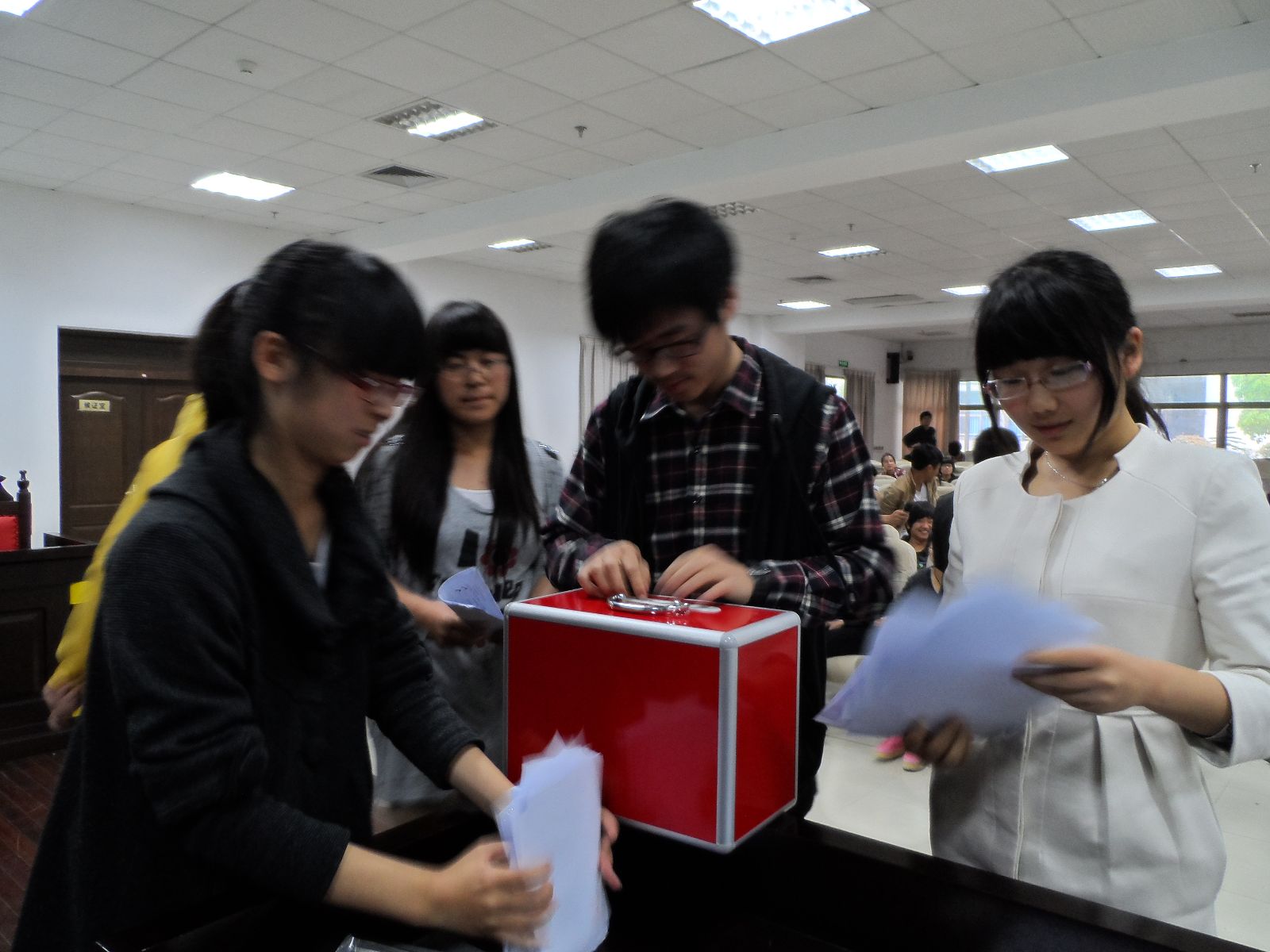 经过近两个小时的激烈角逐,最后11政本被评选为党团示范班,12法一被评选为学风特色班,11行管被评选为学风特色班,11法一被评选为学风特色班,11法二被评选为学风优良班。