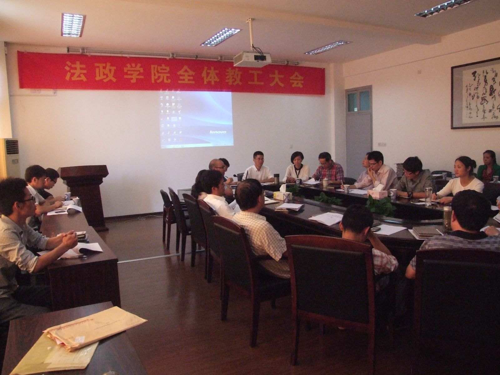 王宗正副院长通报了本学期开学来的教学工作情况并部署下一阶段学院教学工作。王副院长首先通报了学院本学期开学以来教学情况与学校教学项目评审情况,宣读了学院《课程(群)负责人制度实施办法》、《课堂教学竞赛实施办法》、《教学项目建设与培育办法》三份文件,并就接下来的毕业生论文指导工作与教学项目申报等进行了部署。