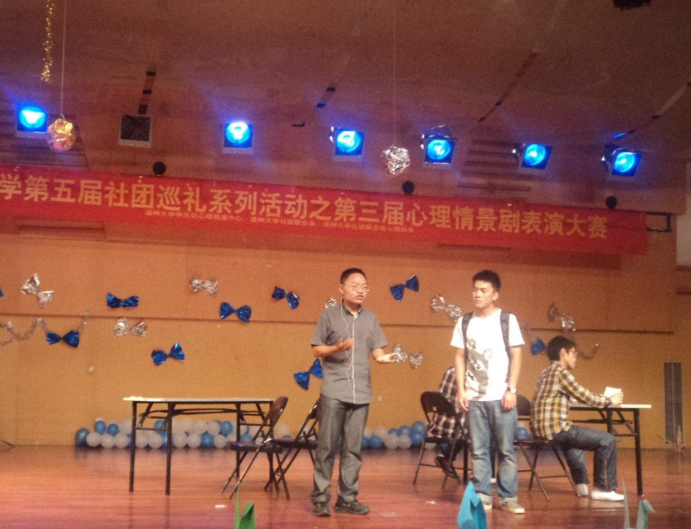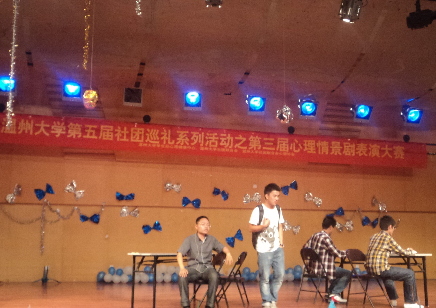 学生会心理部组织排练近一月、由顾佳妹、华天宇、陈才渊、吴颖、吴培、季耀、吴菲檑、俞佳敏、姜坤、彭浩棋、鲍欣媛等同学参演的心理情景剧《年轻的代价》正式登台亮相,演员们自信大方地走上舞台,神情专注地投入表演。他们凭着情真意切的表演,时而诙谐幽默,时而发人深省,引起了在场师生的共鸣和思考,为观众们上演了一场心灵视听盛宴。最终,看片狂人