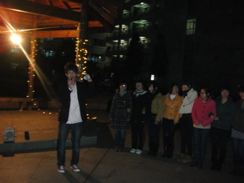 3月7日晚,09法一全体成员聚集在生活区C区的凉亭,策划开展了"齐聚涨人气,创意女生节"的团日活动。