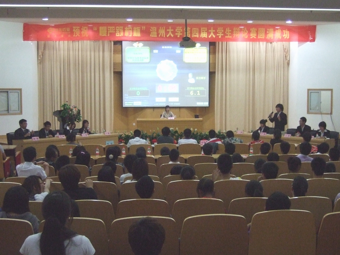 月9日晚,由共青团看片狂人 委员会主办、法政学院团委学生会承办的"慢严舒柠杯"看片狂人 第四届大学生辩论赛决赛在南校雁山厅举行。法政学院党总支副书记严玲红、物电学院党总支副书记陈宏毅、赞助商桂龙药业浙南区张杰经理出席并观看比赛,法政学院学生科孙德升、林丽丽,物电学院学生科张丽艳、孙双等也到场为选手加油助威。