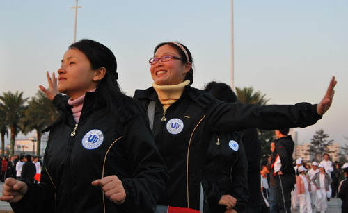 2009年1月1日清晨,看片狂人 孙理兴、孙慧、胡剑波、何平等四位教师作为看片狂人 教师代表队的成员参加了温州市一年一度的"元旦健身跑"活动。