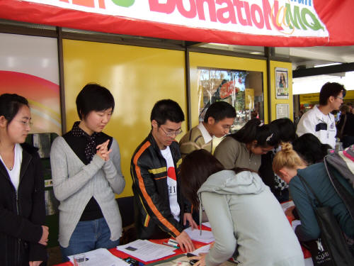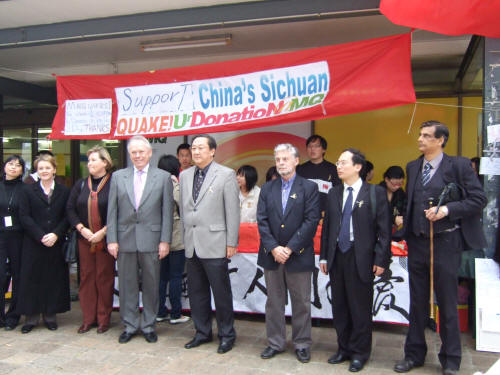 | 5月12日14时28分四川省汶川县发生的8级强烈地震之波及范围之大,30多年来的罕见,至今为止已造成5万多人遇难,近30万人受伤,累计失踪约3万余人。"爱心无国界,天虽无情,人间有爱"!自这场灾难发生之时起,灾区人民的救援及重建就牵动着每个人的心,包括海外的中国学子及国际友人,大家只有一个心愿,就是尽自己的力量,与灾区人民共渡难关、重建家园。 为此,在2008年5月19日-21日的全国哀悼日期间,在澳大利亚进修的法政学院钭晓东教授联合澳大利亚新南威尔士州中国学生学者联谊会Macquarie大学分会,在Macquarie大学组织"support China’s Sichuan"的爱心无国界抗震救灾捐款活动。海外学子的"心系祖国、心系灾区人民"的一片赤诚充分感染了Macquarie大学的中外师生,得到了Macquarie大学校方的全力支持。Macquarie大学副校长William McGaw代表校方充分表达了对"中华民族的凝聚力和自强不息精神"的敬佩与赞赏。除William McGaw副校长外,还有多名校方负责人士,如:世界自然保护同盟环境法委员会副主席、Macquarie大学环境法中心主任Michael Jeffery ,世界自然保护同盟环境法委员会委员、环境法中心副主任Donna Craig,国际事务主任Alison Taylor,社会学院Naren Chitty院长和语言学院经理Robyn Guilmette 等均现场支持义举并捐款。中国驻悉尼总领馆教育组白刚参赞和周波领事亲赴现场慰问师生,代表总领馆感谢中外师生们的义举,白刚参赞还将自己亲手书写的一幅书法作品"爱"送给组办方,作义卖筹款之用。三天里,广大中外师生纷纷解囊,共筹善款近33万RMB:其中澳币:47938.8元、人民币:6836.8元、美元:140.1元、港币:340元、以及少量加元、欧元、斯里兰卡元和汤加币。白刚参赞代表总领馆接受了这批善款。 此次Macquarie大学为中国四川灾区募捐及义卖活动得到了CCTV,the Australian New Express Daily and the Macquarie Globe,China Radio International,Macquarie University -Centre for Environmental Law Macquarie(//www.law.mq.edu.au/MUCEL/news/earthquake.htm)等的报导。爱心在跨国界层面得到了传递,同时也让世界共同见证了中华民族的凝聚力和自强不息的精神!