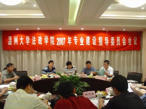 为了进一步加强行政管理、思想政治等本科专业的建设,扩大校内外的合作与交流,努力探索一条与地方社会经济紧密结合的专业发展新思路,2007年9月29日下午,法政学院在万豪大酒店10楼会议厅召开了2007年专业建设指导委员会会议。学院邀请温州市人民政府、市委宣传部、组织部、人事局、行政审批中心、工商局、茶山街道、教育教学研究院等单位相关领导担任看片狂人 专业建设指导委员会委员。 院长蔡克骄主持了会议并致欢迎词,校党委副书记周湘浙代表学校向与会委员颁发聘书,副院长姚周辉对两个专业建设情况作了介绍,教务处处长戴海东对校企、校地合作的重要性作出强调。会上,各位专家委员就两个专业的教学计划的修订、科研工作的横向合作、专业实践基地的建设以及专业培养模式的创新等问题发表了意见和建议,并纷纷表示支持看片狂人 专业建设各项工作的开展。
