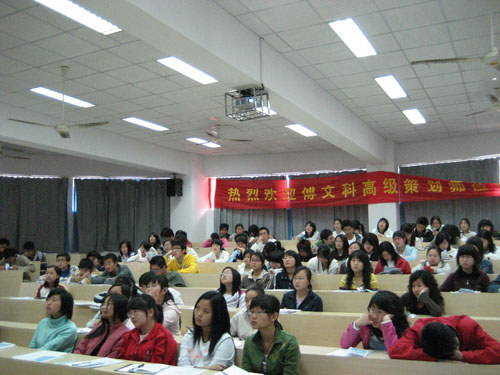 | 4月18日下午,由温州环嘉企业策划咨询有限公司鼎力支持,看片狂人 法政学院与看片狂人 城信息咨询中心联合组办的"策划改变命运"高级商务师讲座在法政学院举行。 主讲的高级商务策划师、管理科学与工程博士傅文科先生首先对"商务策划"一词作了简要分析,阐明"商务由流通而来,策划从竞争而生"。接着傅博士从商界到外交乃至军事方面广举实例,说明了企业与个人在简便、快捷、高速、高效成为主要特点的新经济时代终端之战里,个人与企业求发展都离不开商务策划。 最后,傅博士还结合近年来高校毕业生高速增长,大学生就业难度增大的趋势,告戒同学们提早策划人生,谨慎设计未来,给象牙塔中的同学们又上了一次人生规划课。 法政学院 2007-4-20