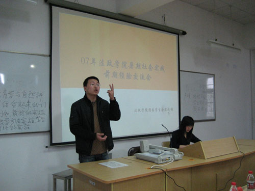 | 4月18日下午,为了具体介绍学院暑期社会实践的总体情况,向实践团队及个人阐明暑期社会实践的意义,法政学院实践部在2-101室组织开展了一次"07年法政学院暑期社会实践前期经验交流会"。学院辅导员郝舒老师,"西部寻访"社会实践队主要负责人黄培树同学,总工会社会实践队伍负责人杨虹同学,消费维权实践队伍负责人孔建平等同学出席了此次交流会。 会上,辅导员郝舒老师首先对同学们提出了几点要求:在暑期社会实践中应结合实际情况,充分发挥专业特色和优势,重点组织实施大学生社会主义荣辱观宣传服务,大学生新农村宣讲服务,大学生支教服务等活动,同时就实践活动的学分评定制度也做了细致的讲解。交流会中,各校、院级成功暑期社会实践队伍的主要负责人和同学们分享了实践经验,就如何做好前期筹备与总结工作,加强活动信息的反馈,经费预算,活动资料整理收集工作,特别是影音资料的摄制工作等问题各自做了详尽的分析和答疑。 本次经验交流会使同学们对于暑期社会实践活动有了一个更为具体深入的认识,同时也为07年暑期社会实践活动的开展提供了经验支持。 法政学院 2007-4-18