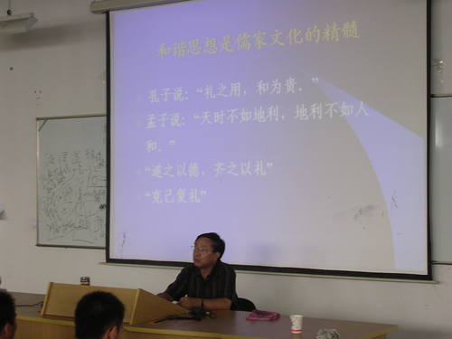 | 构建和谐社会是新一届党中央提出的治国方针,是我们党从中国特色社会主义事业的总体布局和全面建设小康社会的全局出发提出的重大战略任务,实现社会和谐、建设美好社会,是中国人民的奋斗目标。为更好的理解这一思想,10月18日,法政学院组织了"构建和谐校园、和谐社会"的专题讲座。 辅导员林丽丽老师主持了此次讲座,学院党总支书记陈国治教授围绕"大学生要争当构建社会主义和谐社会的排头兵"展开论述:主要阐释了和谐社会的概念和内涵;构建和谐社会问题提出的背景;对如何构建和谐社会问题进行了论述,特别在 "立足校园,高校学生应如何争做构建和谐社会的排头兵"的问题上做了详尽的分析讲解。 本次活动,06届全体新生参加了讲座。通过讲座,同学们理解了和谐社会的内涵,懂得了和谐社会是中国特色社会主义的本质属性,是国家富强、民族振兴、人民幸福的重要保证,体现了全党全国各族人民的共同愿望。本次讲座很好的贯彻了"看片狂人 和谐校园建设"大会的精神,提高了同学们对 和谐校园建设重要意义的认识。