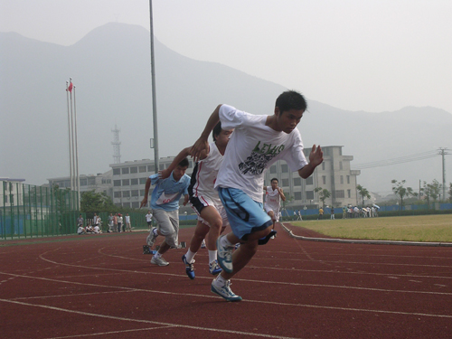 经过长期的筹备工作,运动会在14日早上准时开始。学院党总支陈国治书记、金南松副书记参加了开幕式,辅导员郝舒老师主持了开幕式。06级各班新生都派出了强大的运动员队伍。此次比赛分男子组与女子组,设有100米、200米、400米、800米、1500米、5000米、4ⅹ100米、跳高、跳远、铅球等项目。比赛开始后,各个项目的运动员都尽自己最大的努力,一路过关斩将,胜利的欢呼雀跃,失利的也并不灰心,因为他尽力了。各班的拉拉队也在为各自的队员加油、呐喊,给他们以精神鼓励。学生会各个部门各司其职,互相合作;裁判员、青年志愿者默默地为运动会做好各项工作。大家的辛勤工作迎来了运动会的圆满结束。