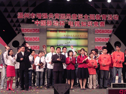 为了进一步学习实践"三个代表"重要思想,深入贯彻党的十六大和十六届三中、四中全会精神,全面落实团的十五大和十五届三中全会确定的目标任务,提高团员队伍整体素质,我校团委积极响应团市委的号召,组织了一支由法政学院的三名同学(上官维华、方跃镇、高文丹)组成的代表队参加温州团市委开展的增强共青团员意识主题教育活动"学理论 知团情"电视知识竞赛。 11月14日下午,在温州广播电视总台一号演播大厅举行的决赛中,我校代表队表现不凡,在前两轮必答题、抢答题的环节过后,以150分的高分暂时领先,在最后一轮风险题环节,我校选手又以精彩的回答赢得了全场的热烈掌声,最终,顺利而轻松地获得了本次电视知识竞赛一等奖的好成绩。校团委筹备组叶朝阳老师、学前教育学院陈秀雅老师以及法政学院林丽丽老师带领80多位同学组成的后援团到现场为参赛选手鼓劲加油。