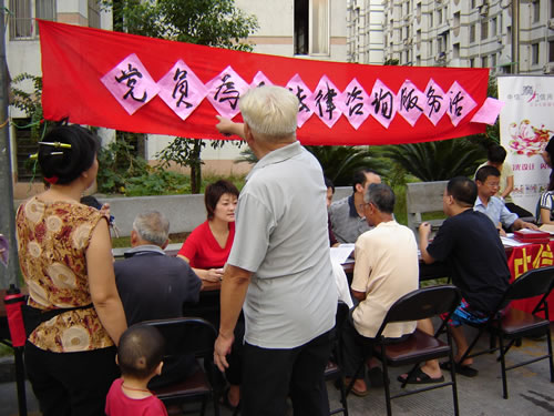 为了发扬党的优良传统,全心全意为人民服务,法政学院第一党支部的党员教师根据自己专业特长和知识优势,于10月7日举行了大型义务法律咨询活动。 10月7日下午,法政学院第一党支部在下吕浦柳园社区开展了题为"党员为民法律咨询服务"的活动。在半天的活动中,党员教师们以百般的热情投入到义务咨询服务之中,为群众答疑解惑。本次活动共接待群众数十人次,涉及拆迁补偿、医疗纠纷、家庭暴力、交通赔偿等关系群众切身利益的各个方面。党员们运用浅显的语言,让群众了解法律法规,学会维护权益。咨询者中有许多老年人,讲述问题往往不清楚且时间长,但参加活动的党员教师们自始至终都耐心细致地倾听、不厌其烦地解答,直到居民明白、满意为止。 这次法律咨询活动,通过向社区居民进行法律知识的答疑,增强了居民法律意识,解决了生活中的实际问题,达到了为群众法律答疑、排忧解难的效果,也树立了党员队伍勤勉尽责、忠实为民的良好形象,密切了与群众的联系;同时,党员教师们也深受教育,真切感受到"群众利益无小事",并进一步激励了以更加振奋的精神面貌,投入下个阶段的党员先进性教育活动中。