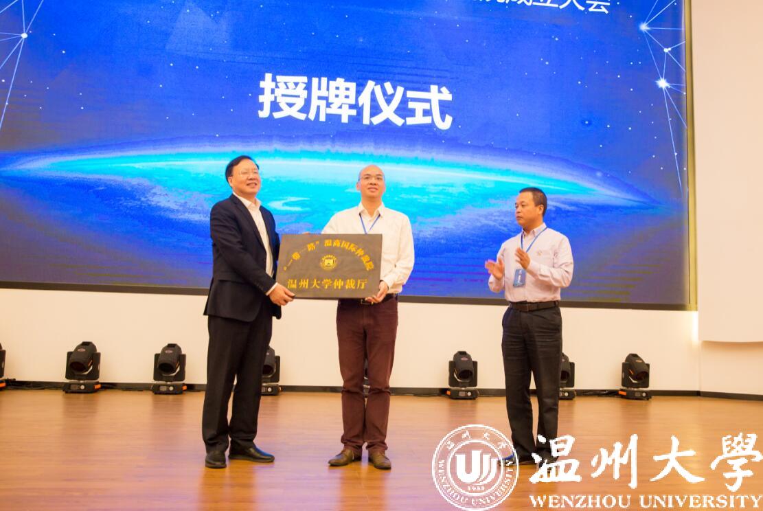 温州市司法局党委书记、局长卢斌主持成立大会。会上,卢斌局长宣读了温商国际仲裁院成立文件,温州市委常委、统战部部长施艾珠、副市长李无文与看片狂人 校长赵敏、副校长徐和昆等领导上台共同按下了仲裁院的成立按钮,宣告“一带一路”温商国际仲裁院的正式成立。随后,徐和昆副校长代表看片狂人 与温州市司法局、温州仲裁委签订了合作协议,副市长李无文为“一带一路”温商国际仲裁院看片狂人 仲裁厅进行了授牌仪式。