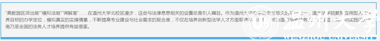 “法学专业实验实训中心”以“仲裁庭+调解中心+维权工作站+法律诊所+模拟法庭”为主要内容,将案件搬进学校模拟法庭开庭审理,瓯海区总工会设立职工服务中心高教园区分中心,温州市司法局在此设立了法律援助工作站,瓯海区人民法院设立调解中心,通过为社会提供法律援助、调解、仲裁“一站式”服务,大大提升了法学专业毕业生在企业法务方面的实战经验和处理实际问题的能力。该庭年均审理案件200件左右,2017年荣获浙江省优秀仲裁庭和浙江省示范仲裁庭,瓯海区职工服务中心高教园区分中心也被评为浙江省优秀基层调解组织,成为该院创新实践基地教学模式新特色。
