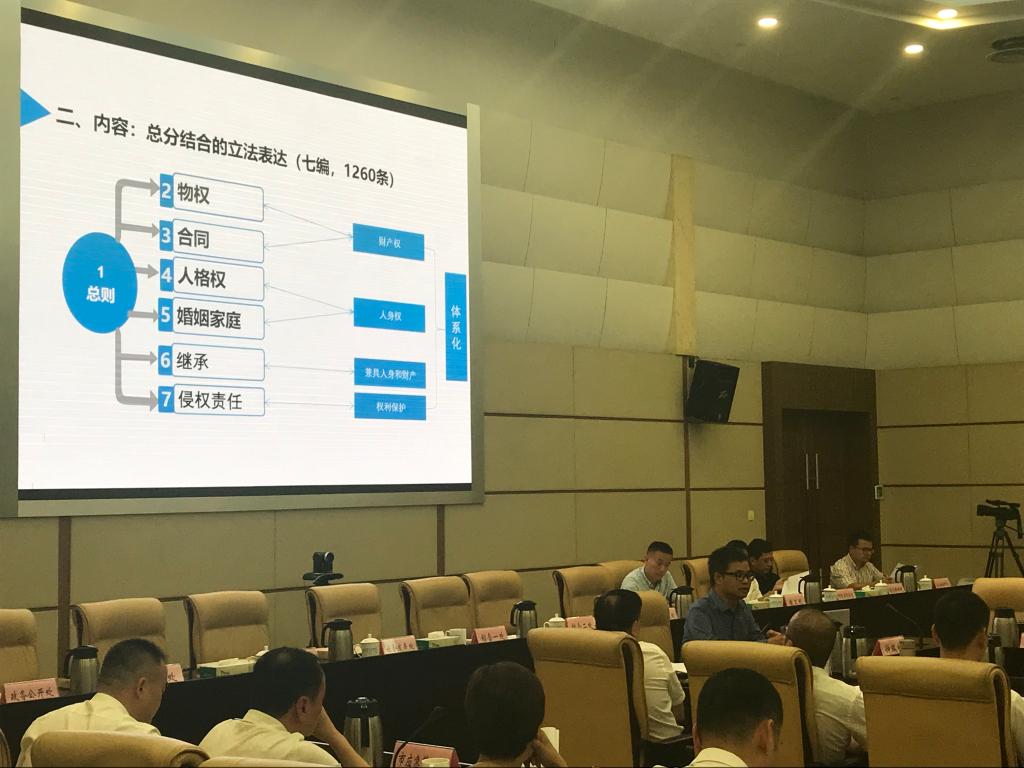 钟瑞栋教授的解读以“《民法典》的中国风格”为主题。首先,钟教授引用习近平总书记的论断阐释了我国《民法典》在“推进全面依法治国”、“发展社会主义市场经济”、“坚持以人民为中心”、“推进国家治理体系和治理能力现代化”四个方面的重要意义。其次,在《民法典》的内容方面,钟教授指出我国《民法典》通过总分结合的表达方式达致其体系化目标,总则编和六分编全面规定了民事主体的财产权利和人身权利,形成了一个完整的民事权利保护体系。第三,钟教授认为《民法典》的核心理念在于私法自治及其限制,在我国《民法典》规定的基本原则中,平等原则和自愿原则是私法自治理念的体现,而公平原则、诚信原则、公序良俗原则、绿色原则则体现了对私法自治的必要限制。此外,钟教授还对我国《民法典》的两处具体条款作了专门解读:其一是比照《物权法》第149条,钟教授解释了《民法典》第359条第1款的住宅建设用地使用权续期费用条款的立法变化及其原因;其二是对于《民法典》第1077条的离婚冷静期条款,钟教授认为这是对我国既有的协议离婚制度的补充,能够促使夫妻双方审慎对待婚姻家庭关系。最后,结合作为市政府重要工作内容之一的“两个健康”建设,钟教授谈到《民法典》以任意性规范为原则,强制性规范为例外的规制方式是我国社会主义市场经济健康发展的重要保障,政府部门应当兼顾严格执法与保护私权,以保证《民法典》有效实施为重要抓手推进法治政府建设,把《民法典》作为行政决策、行政管理、行政监督的重要标尺。总之,《民法典》的内容涵盖了民事主体“从摇篮到坟墓”的方方面面,而其语言又具有高度的专业性和抽象性,值得所有社会成员终生阅读、学习。